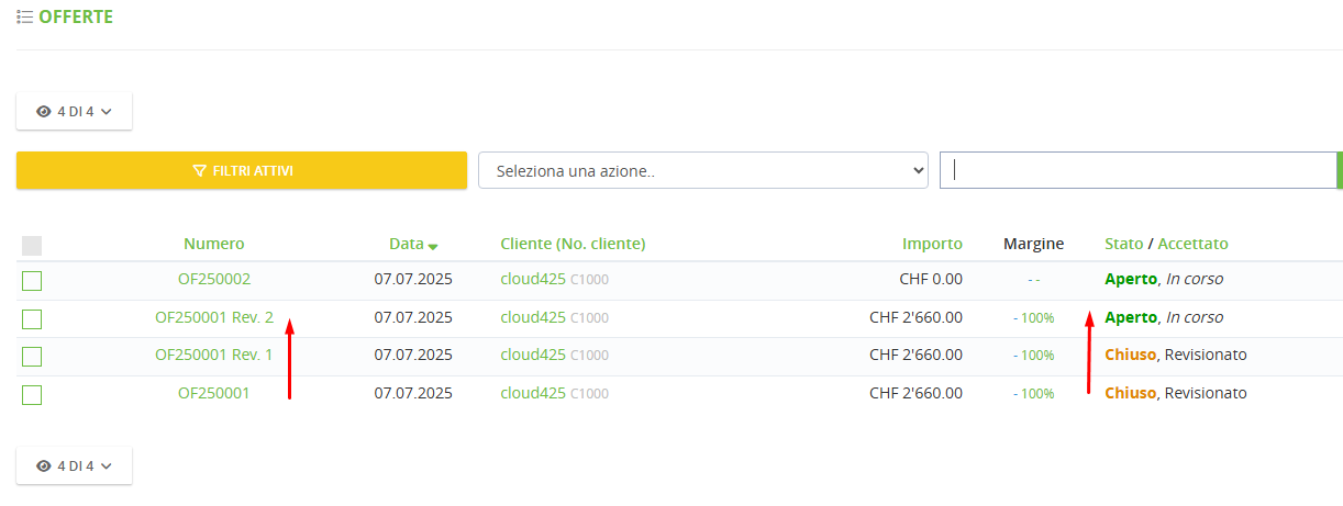 • Revisione di un documento offerta, di modo che venga mantenuta la numerazione principale in caso di aggiunte o modifiche parziali di una offerta: