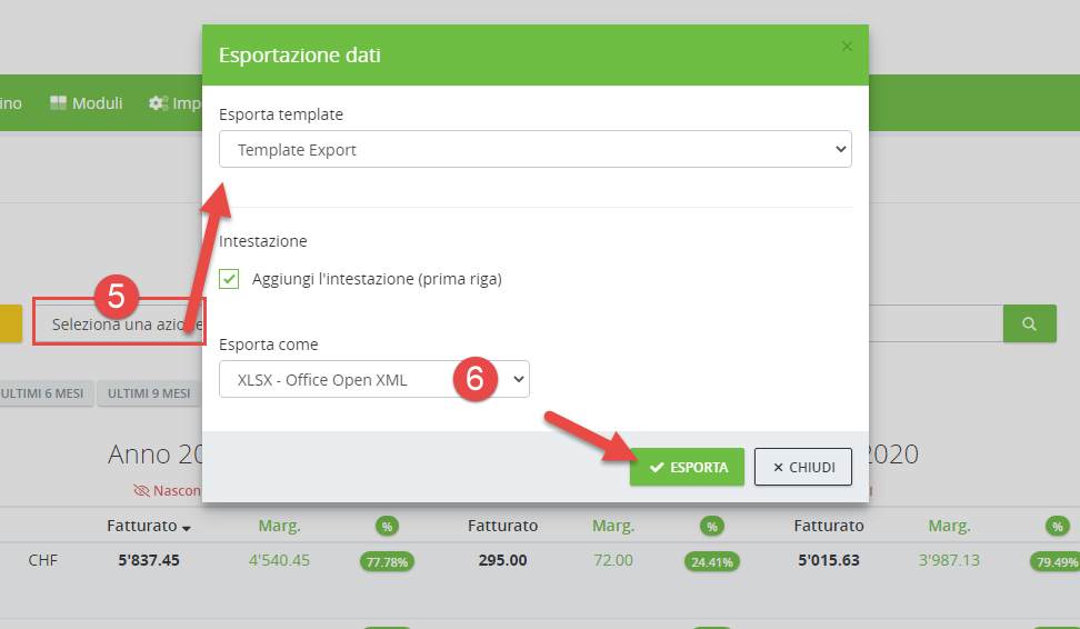 (5) I dati di possono esportare in diversi formati: