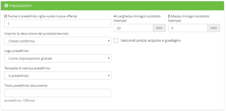 - Numero predefinito righe vuote (nuova offerta)