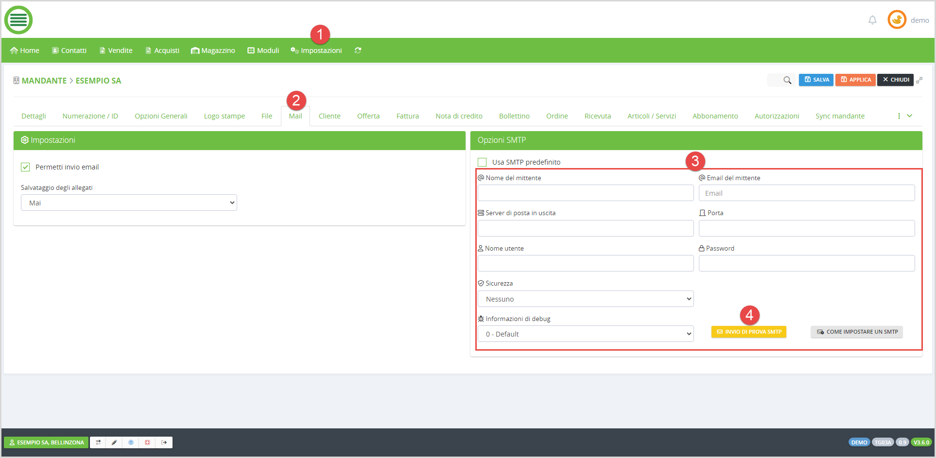 2. SMTP predefinito GLOBALE sul mandante