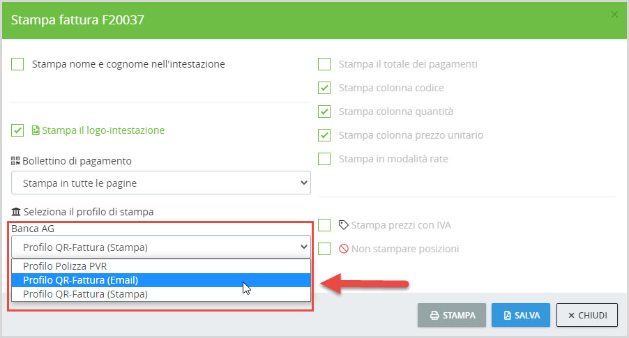 Per vedere come รจ la nuova QR-Fattura, provate a stampare una fattura selezionando 1 dei 2 profili di stampa specifici.