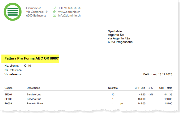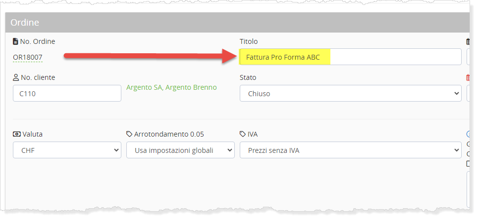 L'ordine verrà quindi stampato come se fosse una fattura pro forma.