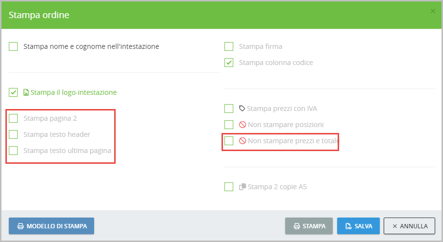 In fase di stampa, deselezionare le voci non necessarie: